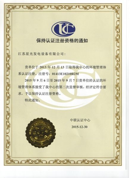 | 持证单位: 江苏星光发电设备有限公司 |