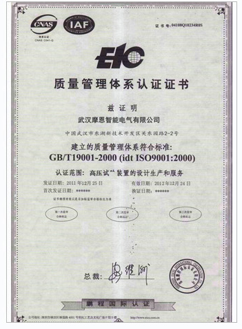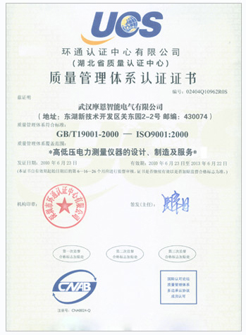 | 持证单位: 武汉摩恩智能电气有限公司 |