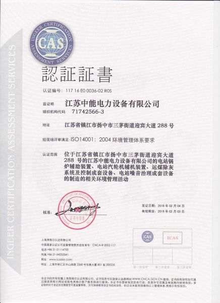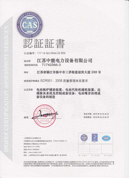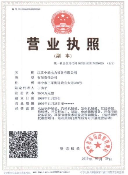 | 持证单位: 江苏中能电力设备有限公司 |