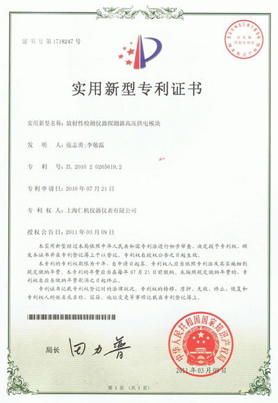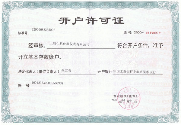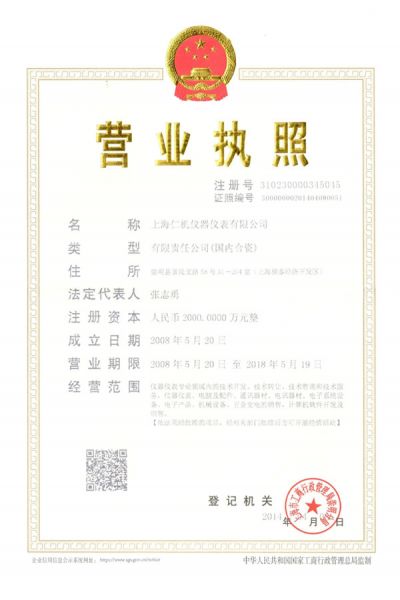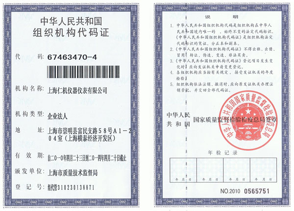 | 持证单位: 上海仁机仪器仪表有限公司 |