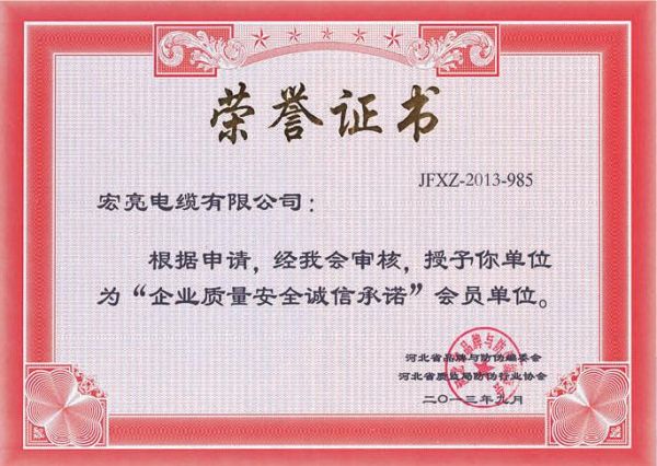 企业质量安全诚信承诺
