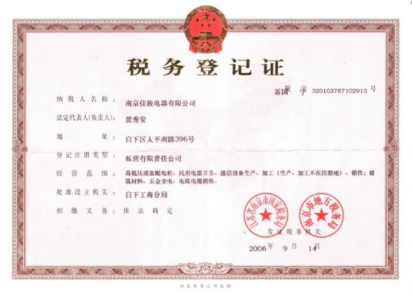 产品名称: 税务登记证 |