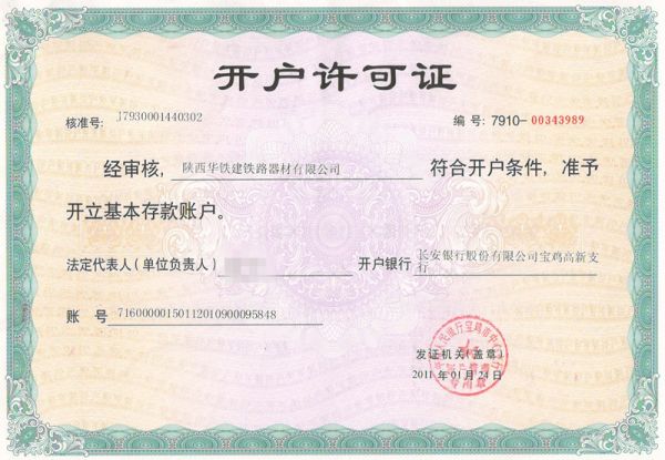 产品名称: 开户许可证 |