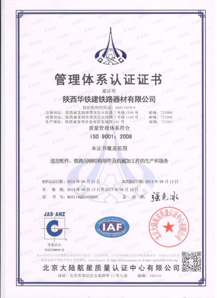 | 持证单位: 陕西华铁建铁路器材有限公司 |